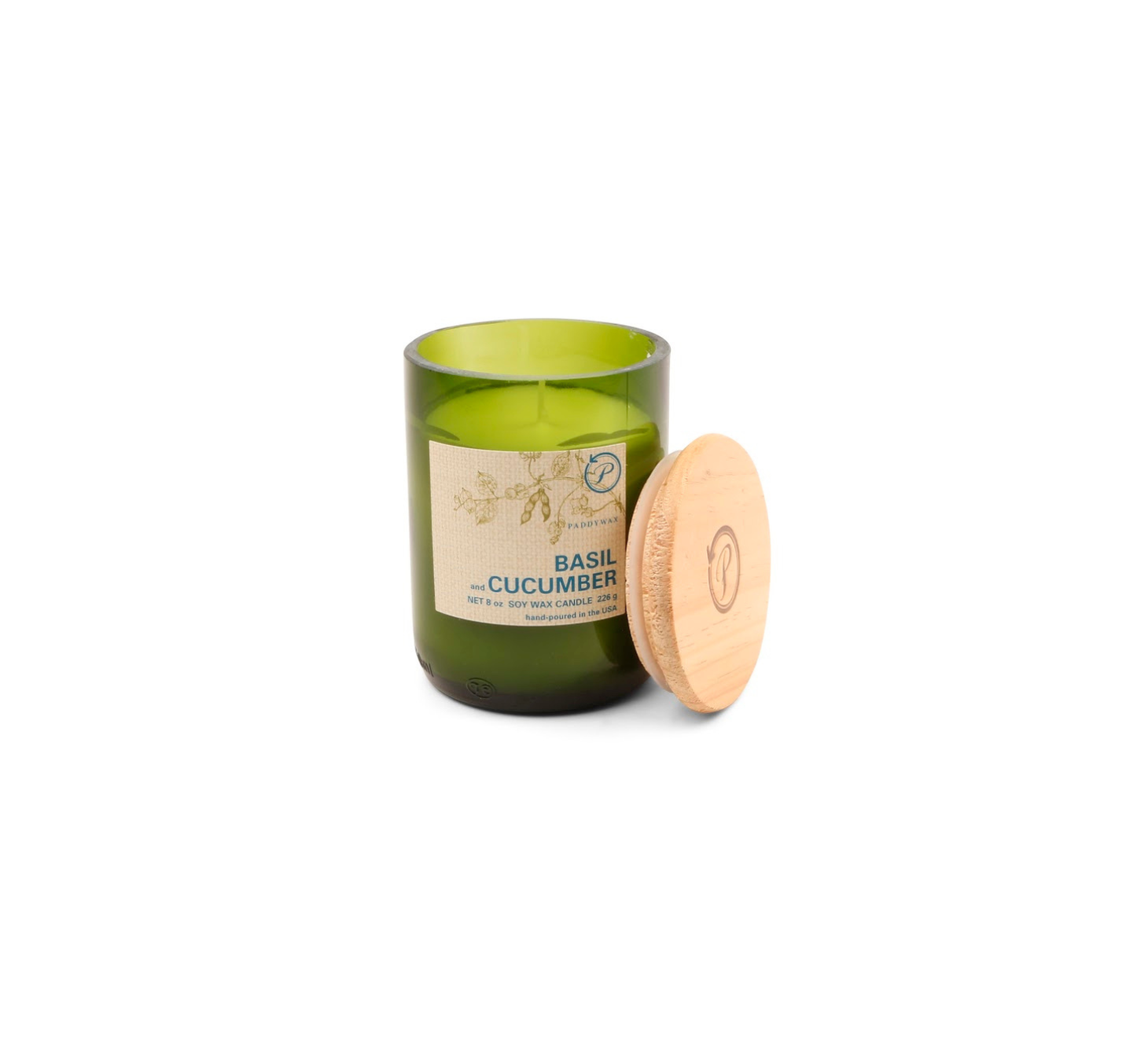 Paddywax Eco Green Recycled Glass Soy Wax Candle – Basil and Cucumber