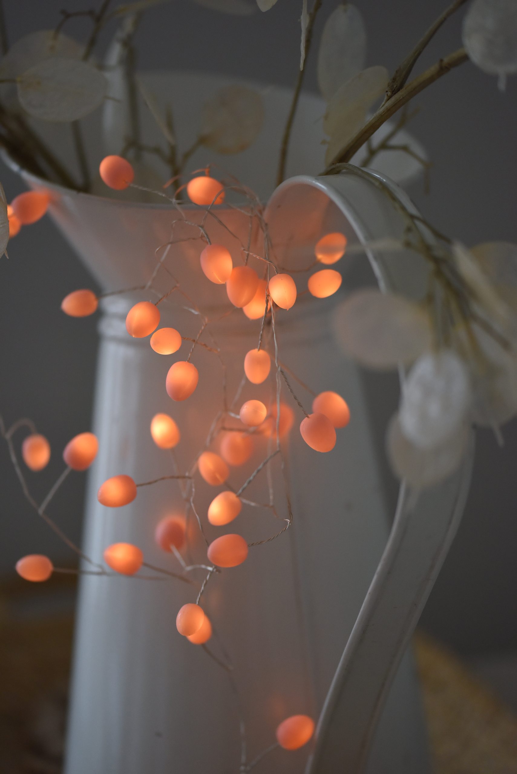 Colour – 60 warm white LEDs, Ornament colour: mint, Wire colour: antique copper