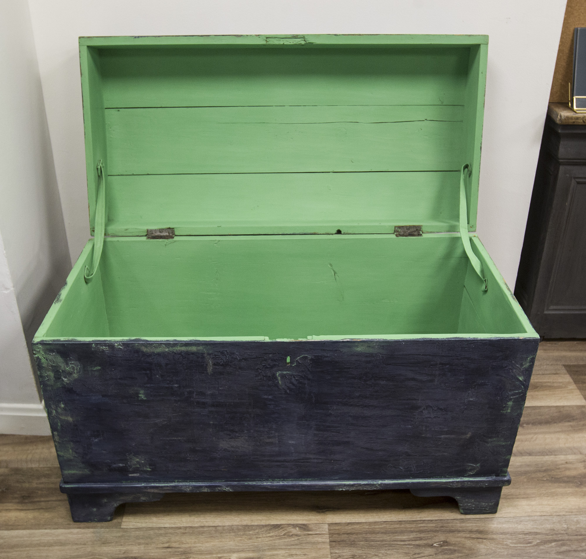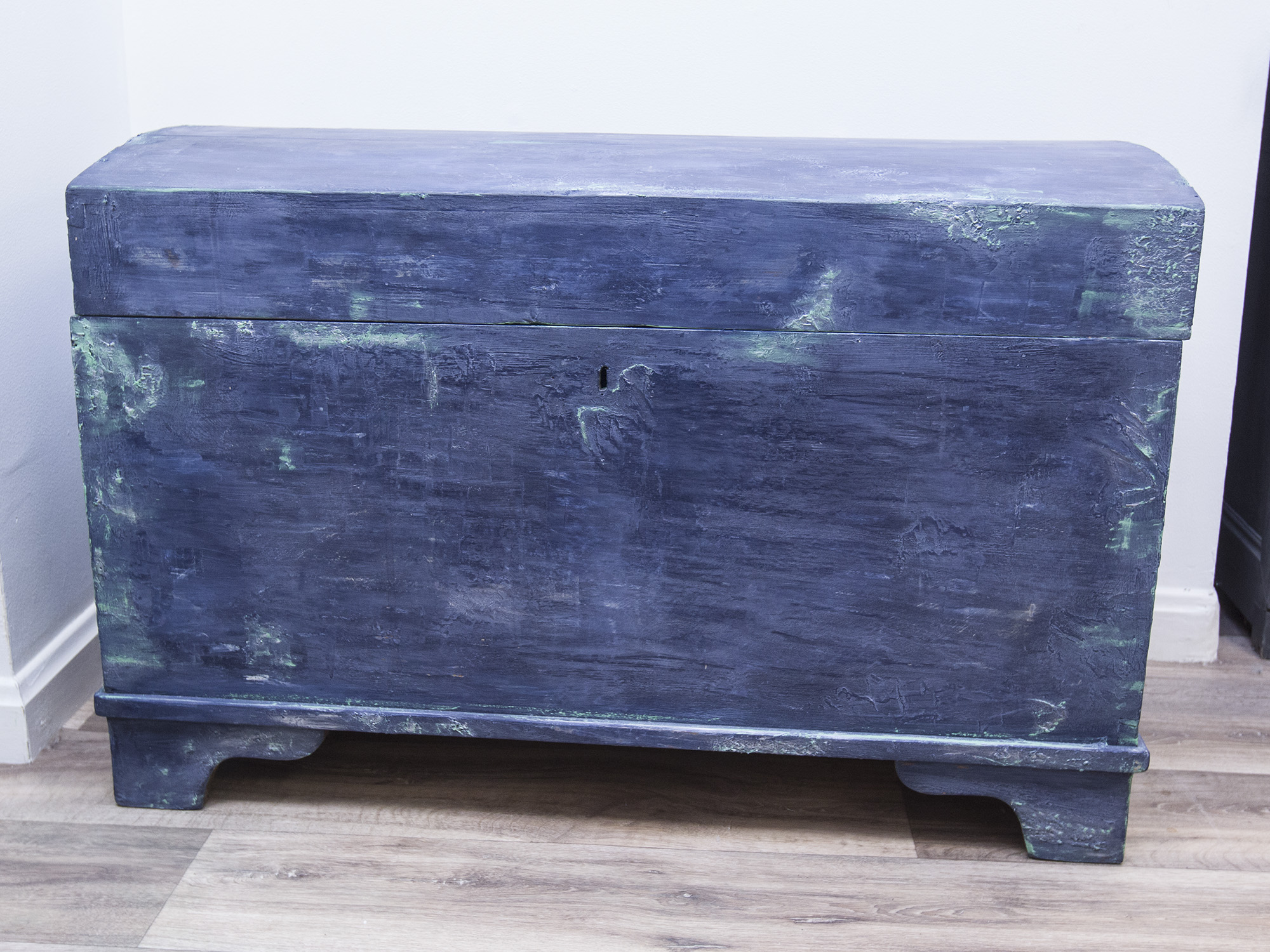 Vintage Blanket Box Painted In Hues Of Navy Blue & Finished With Silver Accents