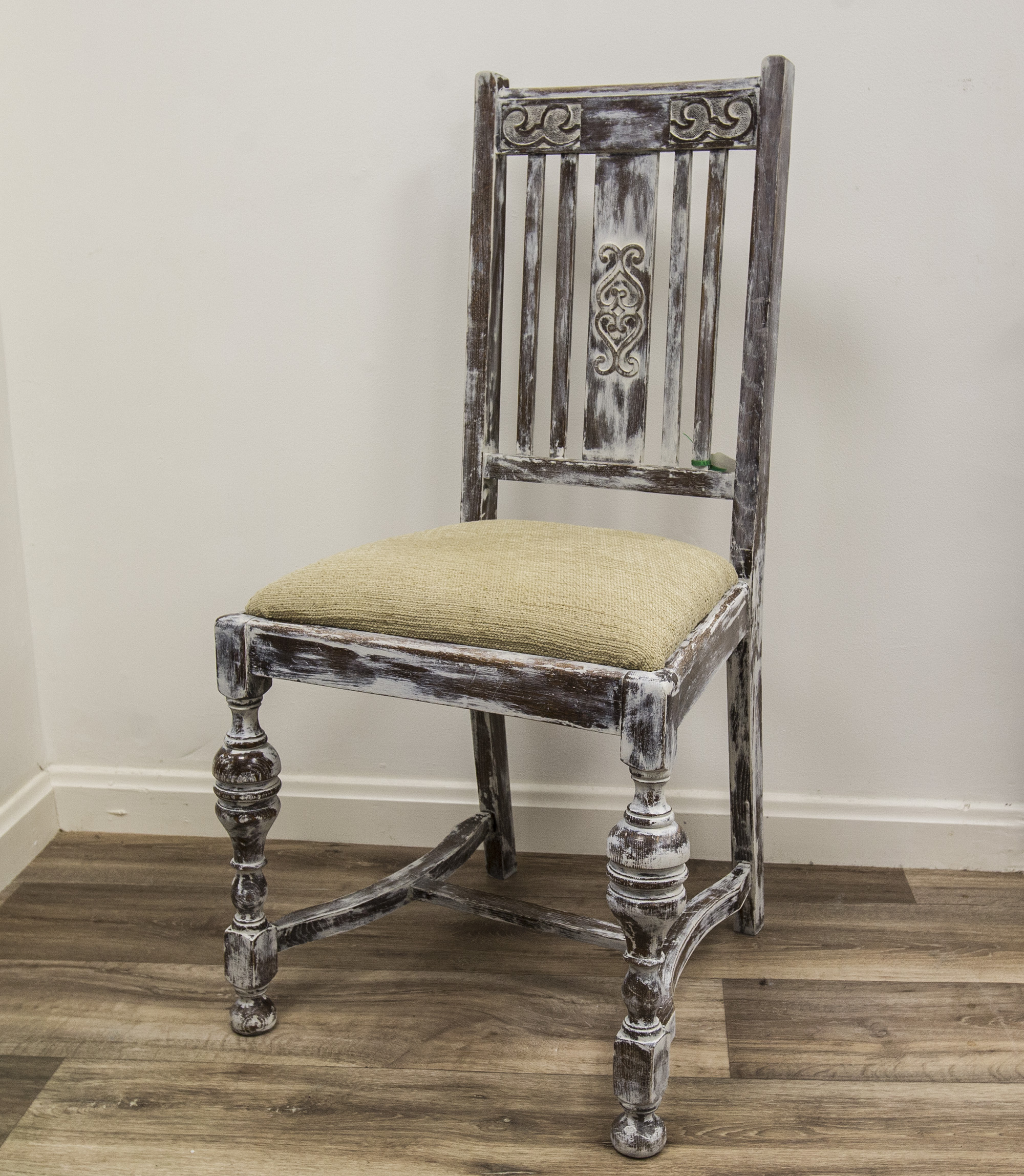 Vintage Lime Washed Oak Occasional Chair With Sand Coloured Fabric Seat